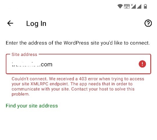 I am trying to connect my wordpress website with mobile application of wordpress but i am receiving xmlrpc error as shown in image. how to resolve it ?